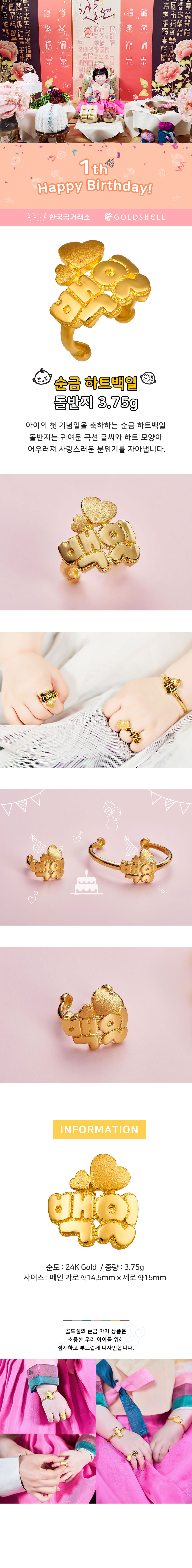 순금 하트백일 돌반지 3.75g